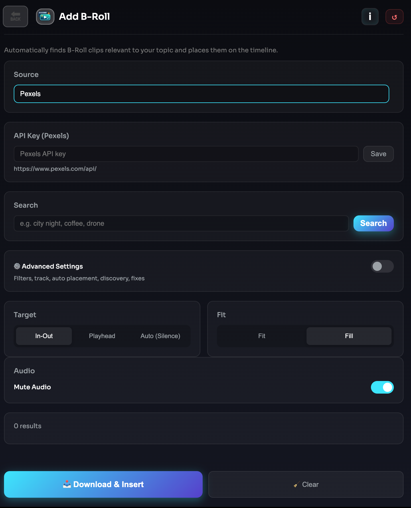 - Istege bagli anahtarlar: B-Roll entegrasyonlari icin Pexels/Pixabay API anahtarlari.